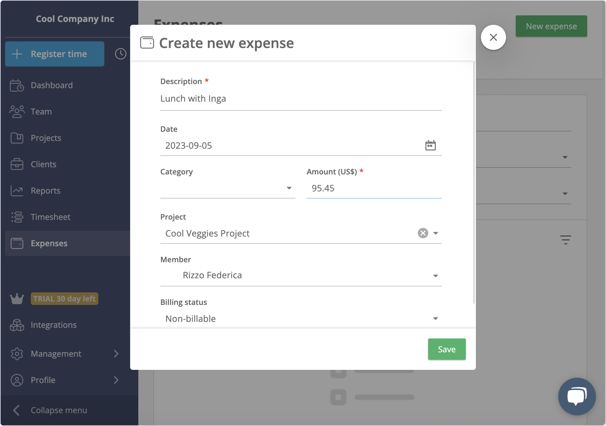 Add your expenses easily in the Expenses section of the workspace. Make sure to add all the details that make them easily identifiable in the account.